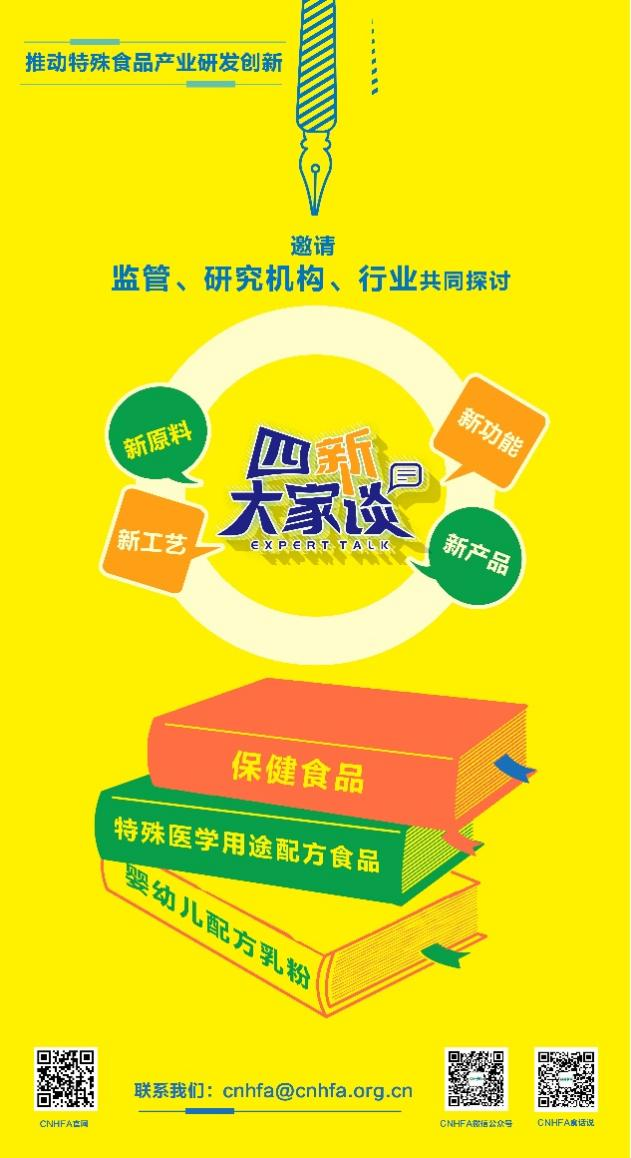 Promoting R&D and innovation in the special food industry by inviting regulatory bodies,research institutions and enterprises to discuss the scientific basics of and the translational pathways of novel ingredients,processes,functions,and products for special food.