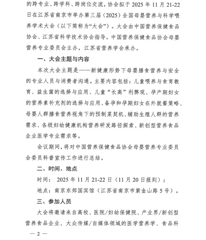 关于召开第三届(2025)全国母婴营养与科学喂养学术大会的通知(第一轮)