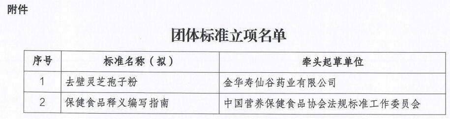 《去壁灵芝孢子粉》和《保健食品释义编写指南》团体标准立项